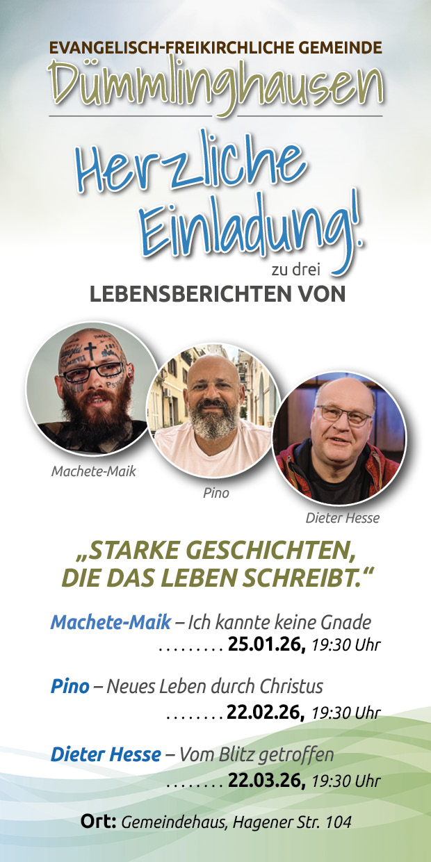 Die Evangelisch-freikirchliche Gemeinde Dümmlinghausen besteht seit 1899. Damals trafen sich mehrere Familien in einem Privathaus zum Gottesdienst. Ebenfalls wurden dort sonntags Kinderstunden abgehalten. 1913 konnte ein Gemeindehaus in der Hagener Straße gebaut werden, 1955 erfolgte eine Erweiterung. Das heutige Gemeindehaus steht an gleicher Stelle und wurde 1983 nach Abriss des alten Hauses errichtet. [mehr ...]